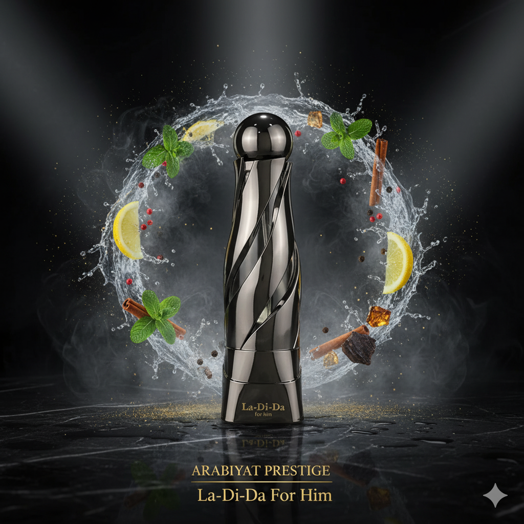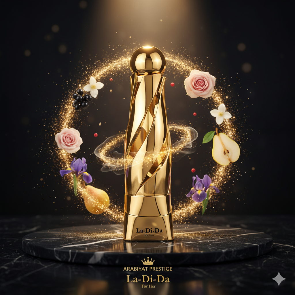 La-Di-Da is an exquisite Eau de Parfum from Arabiyat Prestige, embodying the confidence and grace of modern femininity. Presented in a striking, sculpturally elegant bottle, this fragrance is a true accessory of luxury.